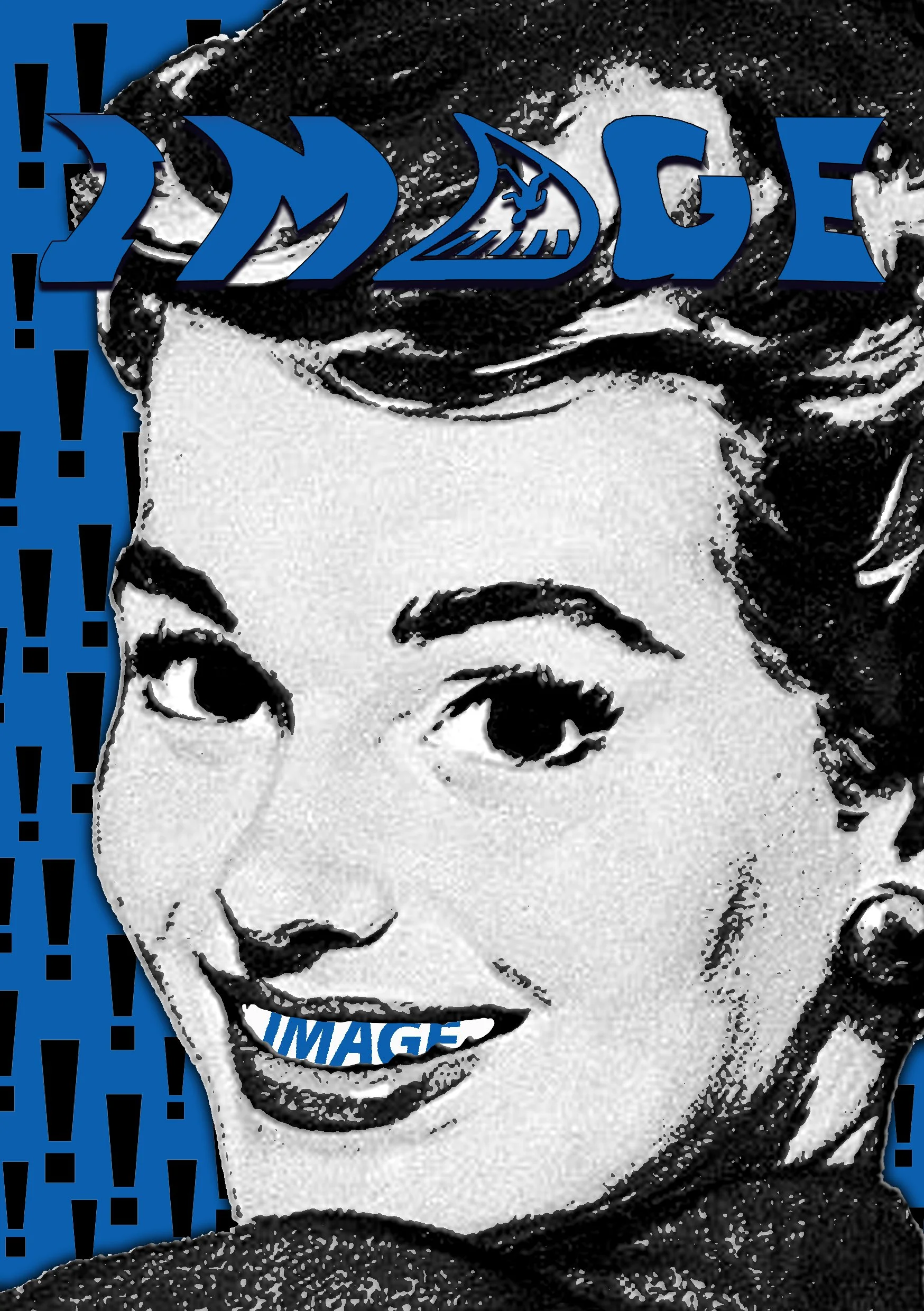 This design was crafted during my magazine project “image” and features a compelling smile worn by what would be considered an old fashioned lady. The design masterfully contrasts a vibrant blue background accented with exclamation marks, producing a visually fascinating narrative that provokes interest and fascination. Click Image to Enlarge.