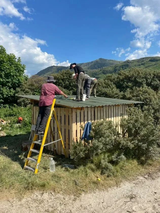 We began by placing four pillars down replicating the shape of a rectangle, making sure that they measured perfectly against one another. After doing this we assigned a few members of the group to begin sawing the wood for the others to place whilst a few others nailed them into place. Over the period of about six hours we were left with the final result which we were all very pleased and proud of.
